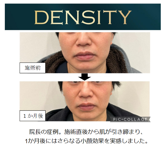 DENSITYは韓国で高い実績を誇る高周波治療器で、HIFU(ハイフ)が苦手な「お顔の脂肪が少ない方」にも安心して受けていただけます。自然で違和感のない引き締め効果で、まわりに気づかれることなく若々しい印象を取り戻せます。